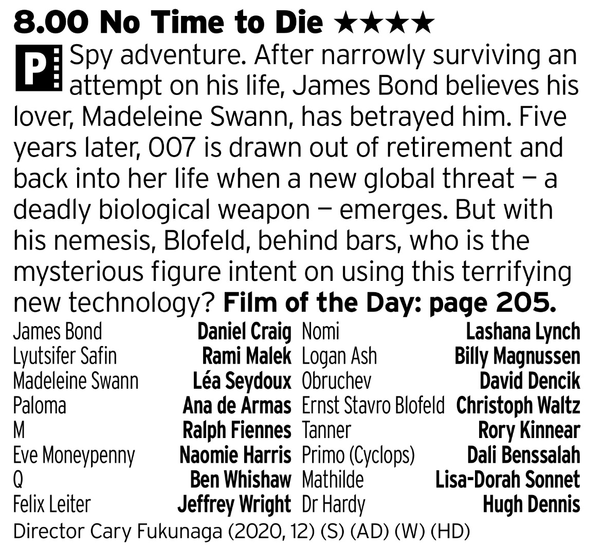 A couple of years ago this was the film that was supposed to save the cinema business, and now here it is on TV. The circle of life continues unabated. And its certainly a step up from Spectre but again suffers from a villain that just isn’t that good. Maybe its just me, maybe its just my thinking that if anyone deserved an Oscar that for playing a rock and roll star it was Taron Egerton for Rocketman which was a far superior film and that Malek’s performance in Bohemian Rhapsody was showy without any real depth thanks to the overt creative controls from the surviving members of Queen. Anyway. Bond. Its good!