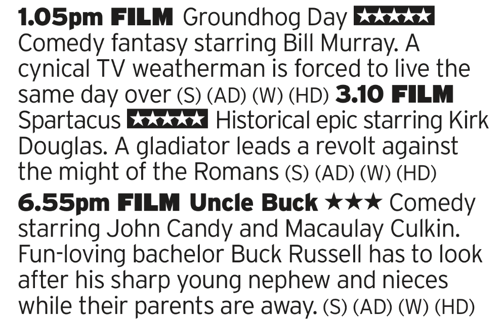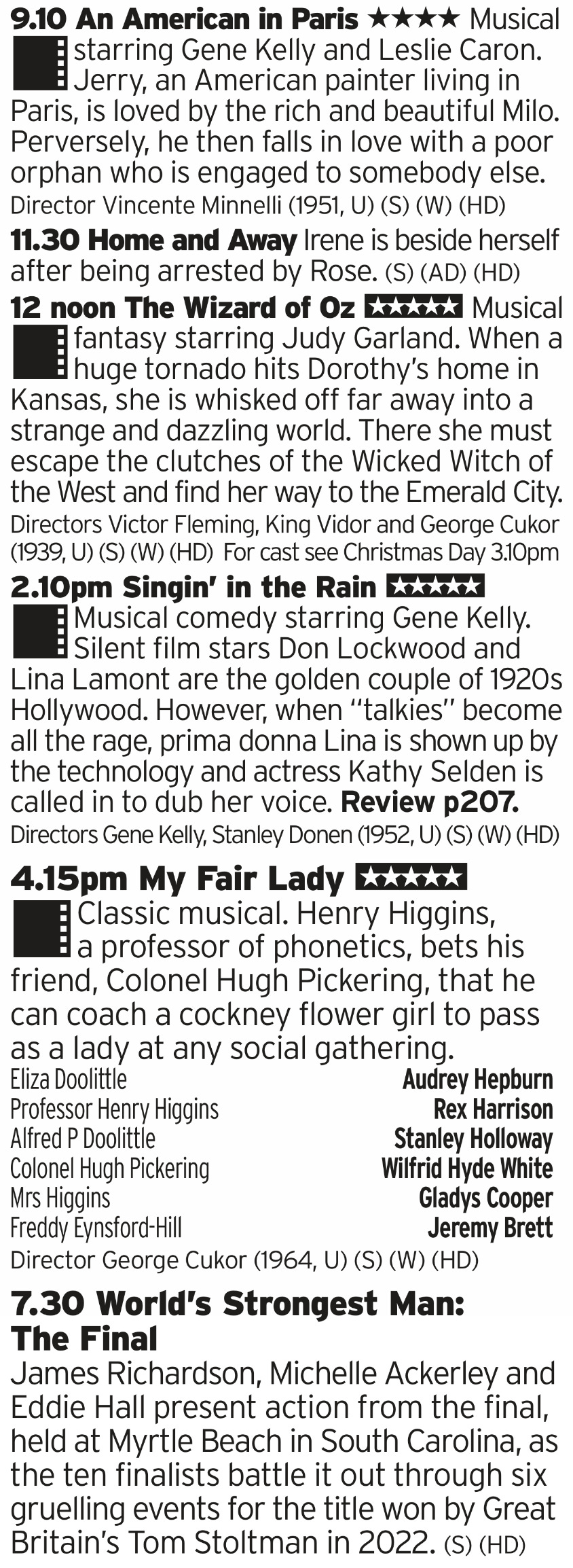 I mean, as a way to start the New Year this is pretty spectacular; opening with a banger of a musical, then three more outright classics of cinema (ignoring Home and Away, obviously, use that that time to get lunch ready or something) then ending with Worlds Strongest Man. It honestly doesn’t get much better than this!