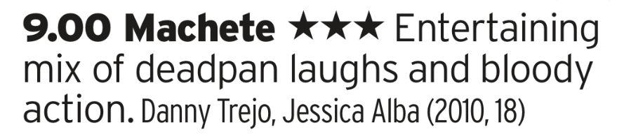 I think when I reviewed this on Letterboxd back when I saw it at the cinema I dubbed it Meh-chete which I thought was a pretty good joke that still stands up. It was a great idea when it was a trailer for the Grindhouse films but it can’t quite make it when its stretched out over a full running time. Danny Trejo is still cracking though, you can’t deny that.