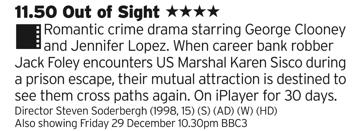 See, this is why you watched that Elmore Leonard documentary earlier. Right here is probably the best film version of one of his books, firmly establishing George Clooney as a cool dude and getting rid of some of the Batman and Robin stink. Its also still remains one of Jennifer Lopez’s best films, and is the film that put Soderbergh on the mainstream radar. And its a belter! A brilliant soundtrack, a great crime story, great acting, its cracking!
