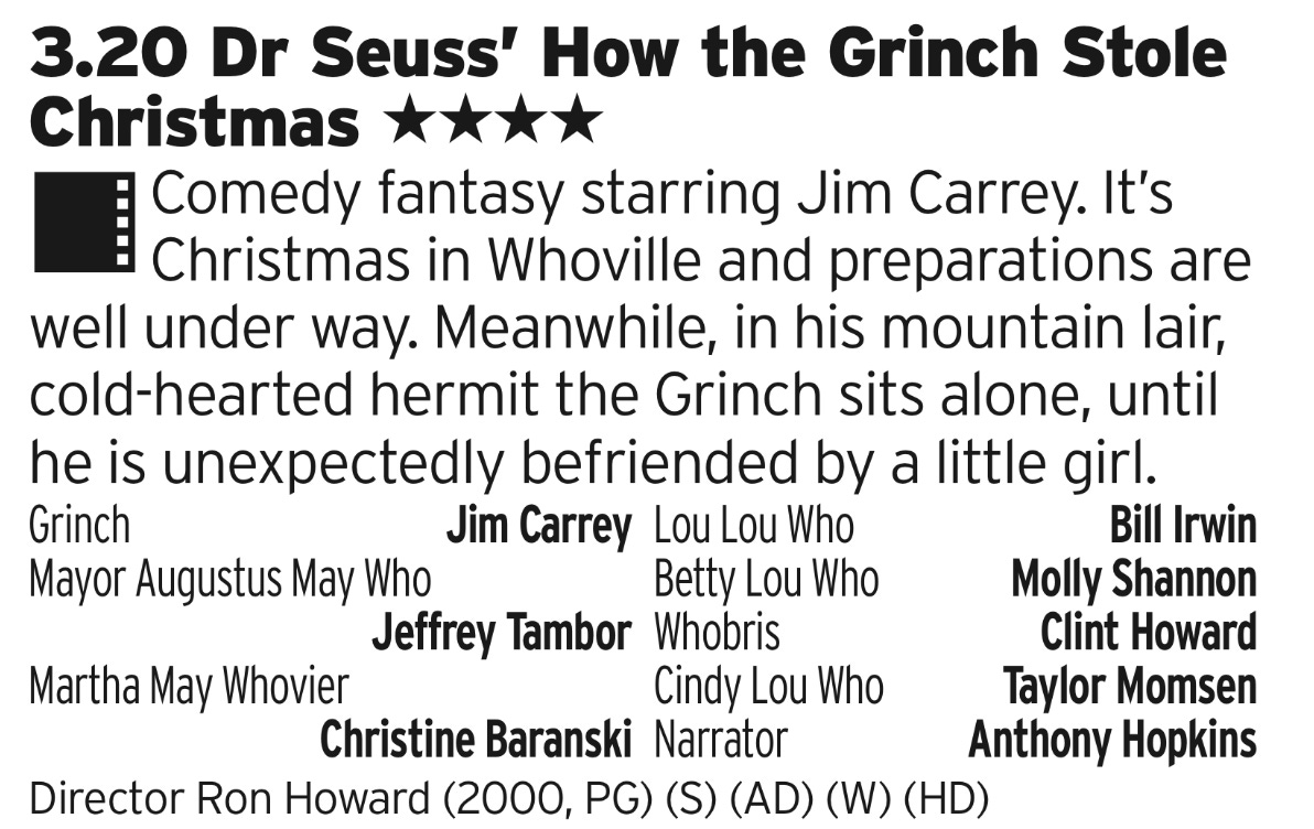 There’s a big spread of films here for you on Christmas Eve Eve starting with David Bowie led muppet madness through to a rom com double bill. Feel free to ignore 2 of the films in the middle (especially Jack Frost) but you should have a good time with the rest of them
