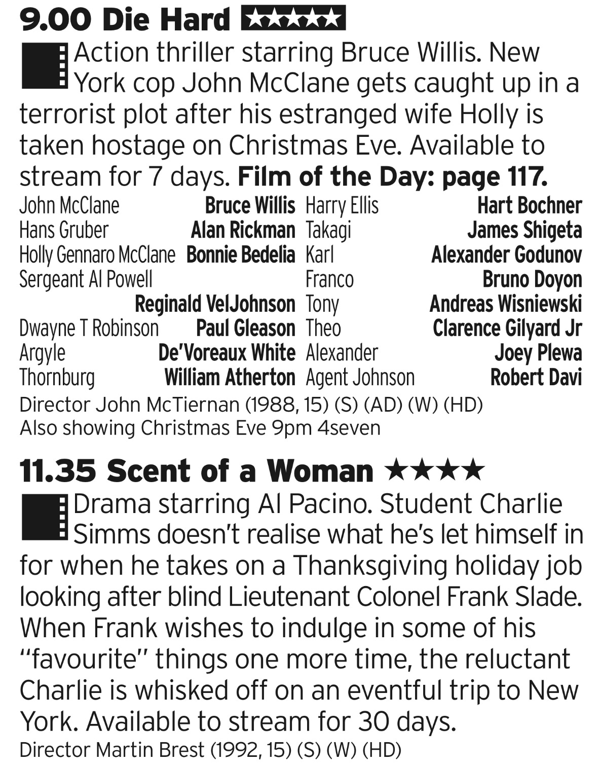 Wow, Channel 4 really knocking it out of the park today! After 2 previous definitive Christmas films we then get Die Hard! And yes, that whole thing feels played out now but thats thanks to boring folks who hate fun. And after that we have Scent of a Woman which I don’t remember being that Christmassy? I mean, it is at Thanksgiving to its almost there but not quite. Ho-ho-hoo-ah? Sorry.