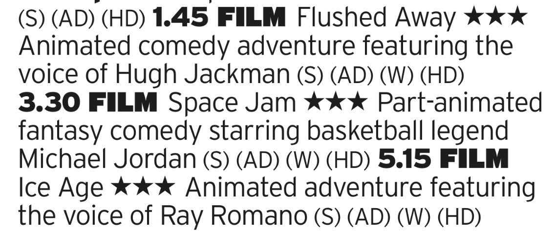 All three films here have three stars and you can’t argue with any of those. We’ve already had my eldest’s opinion on Ice Age but he’s also a real fan of Flushed Away as well. Thats fine, I guess? Its hardly one of the Aardman classics but there you go. And then Space Jam which is definitely a film that was made.