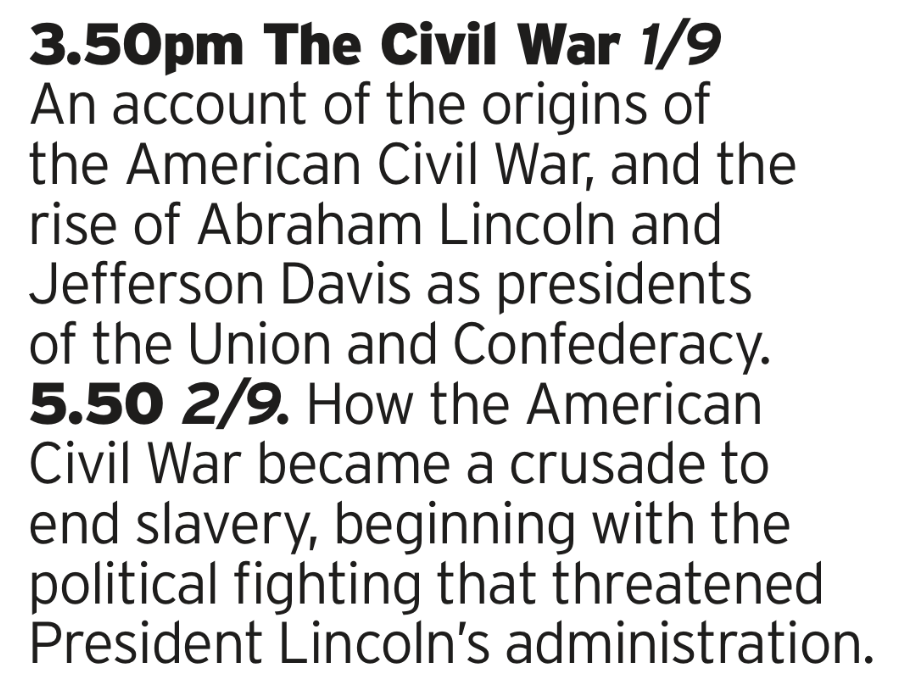 Back to the quality Old Dad programs. We’ve done the Vietnam War, now the Civil War as presented by Ken Burns.