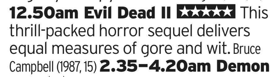 Thats how you end a night! Full on splatstick craziness from the finest of the genre! Evil Dead II might be a cartoon but it still has some proper chills and scares in it which fully justify this being on so late. Imagine trying to put this on at 1150 in the morning? Just madness.