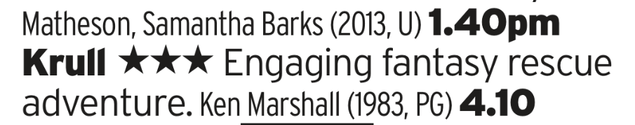 There we go! Flipping Krull on at lunchtime, amazing. A Big daft fantasy sci fi film with big monsters and a frisbee weapon, its pretty rubbish all told but its entertaining rubbish of the highest order.