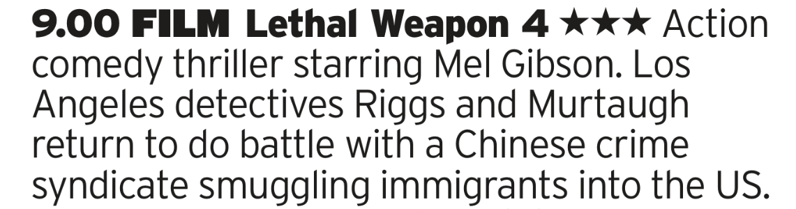 Well, we’ve watched the rest so why not finish the series. A film turned around in 6 months to fill a gap in a release schedule, the disjointed nature of a script cobbled together is only just about covered by the cast who are starting to show their age. It does, however, have a cool bit where Jet Li pull the top off a handgun but thats as good as you get to be honest