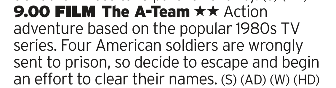 Got to say, I’ve got a lot of time for Joe Carnahan; Smokin’ Aces is a good daft thrill ride, The Grey offers you Liam Neeson vrs Wolves but then takes you somewhere else entirely, but here I think the film collapses under the weight of expectations. Don’t get me wrong, its really well cast with everyone perfectly fitting into the characters established by the original TV show but it doesn’t quite click in the way that it should. I’d still give it a watch though, just don’t expect anything groundbreaking