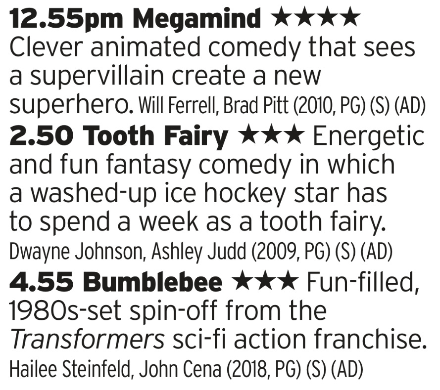 A run of decent family films here; my eldest will try to convince you that Megamind is an absolute stone cold classic but I’m not sure if its that good. Tooth Fairy is the best of The Rock’s family films, and Bumblebee does a lot to get the bad taste of the last few Micheal Bay Transformers films out of our collective mouths. Is that because it cast John Cena? Very possibly
