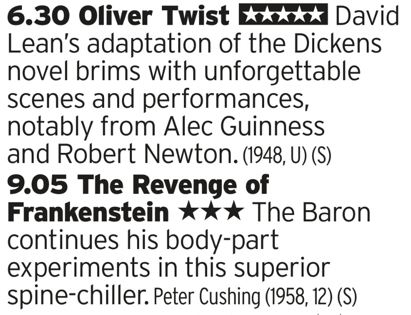 Oh go on then, lets get the definitive Oliver Twist on the list because its Christmas and it should be on there somewhere. And then you can follow that with a classic Hammer Horror film because why not?