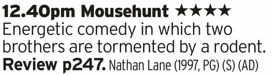 What is it with these bangers today? Honestly, this is one of the best kids films of the 90s, jet black in places with a great cast absolutely smashing it. Animal comedy may not be for everyone, but here everyone should be able to have a cracking time with this one