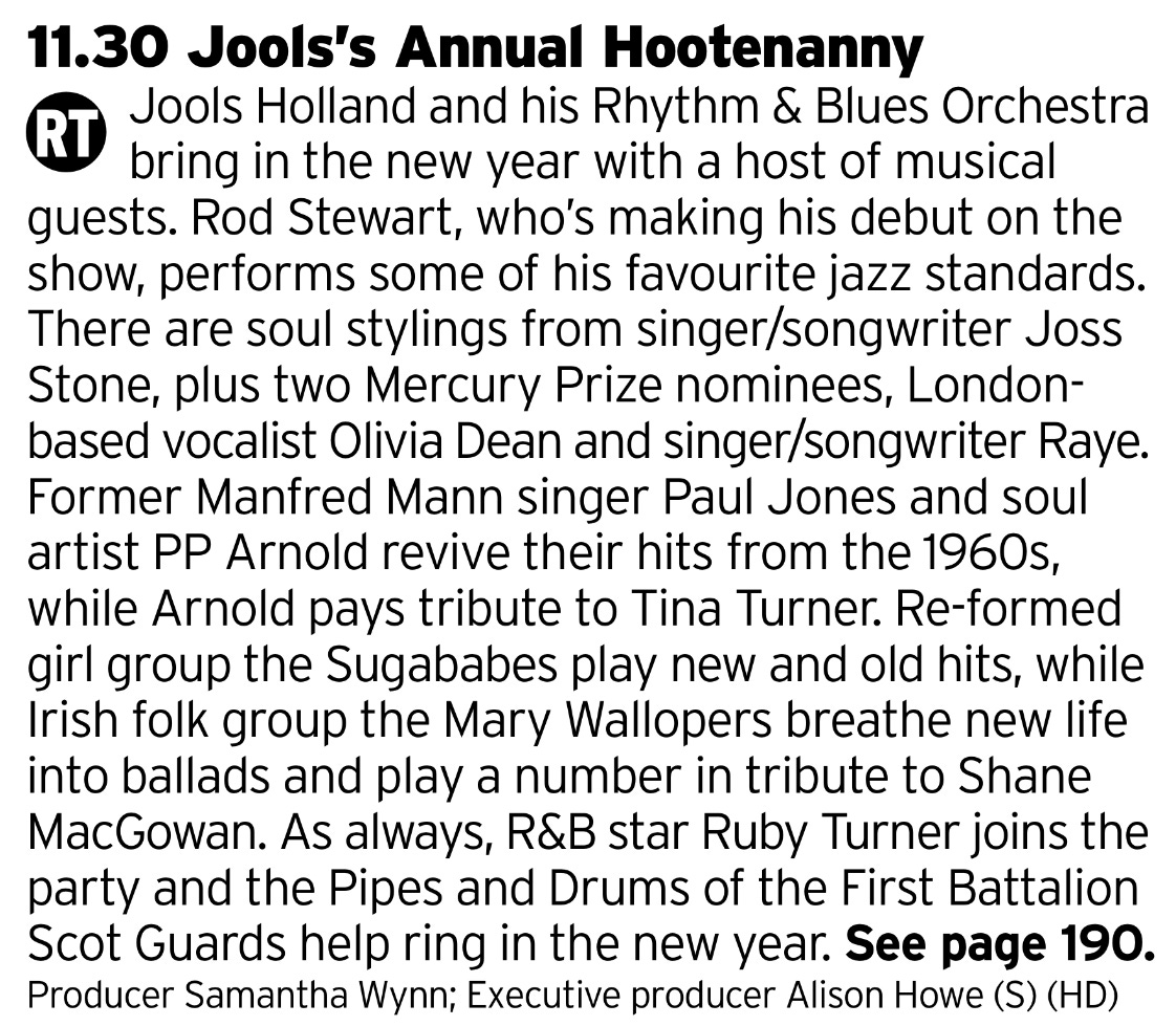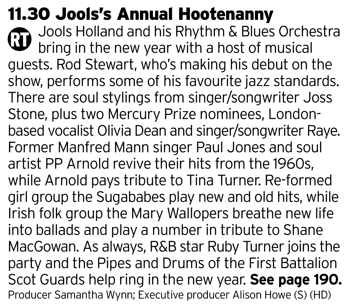 This is the perennial “leave it on in the background” choice for most of us; its somehow comforting that Jules will be there for us every year probably from now until the end of humanity, with his rhythm and blues stylings and Vic Reeves dancing in the audience