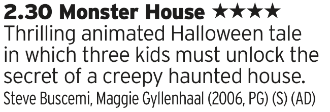 Yeah, this probably should have been on at Halloween but its on now, and you might not be back at work yet so worth giving it a shot. Its a weird dark kids film, partly due to its motion capped CG style making everyone look just plain, well, freaky