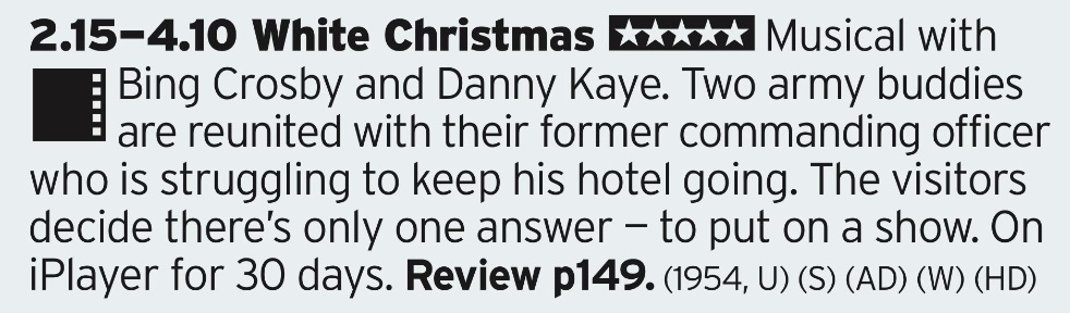 You got to watch this on Christmas Eve, right? C’mon, you just have to. Seeing old Bing in his costume belting out White Christmas, even though the song didn’t come from here it came from Holiday Inn but this is probably where it is most remembered. Get it watched!