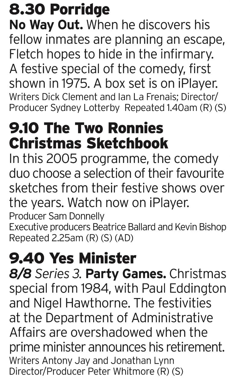 Some more classic goodness here; Porridge remains a really good sitcom, and the Christmas Specials are always really good. After this you get the flip side of Ronnie Barker; Porridge shows his acting chops whereas with The Two Ronnies its all about the comedy sketches. Yeah, its a compilation but that should hopefully mean its all killer no filler. And then another festive special, this time one from Yes, Minister. Not sure how the political references will land these days but the acting and writing is so sharp that it should all still work