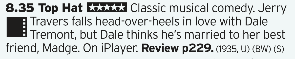 Start off the New Year with one of the definitive Fred Astaire films? With Cheek to Cheek and all that? What a way to clear the hangover