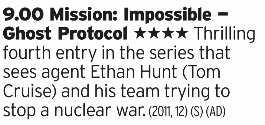 I do love the Mission Impossible films. After II missed the mark a bit it seemed like we were done, but since III each film has been cracking. It was basically a straight line up in quality until the peak of Fallout but that doesn’t mean that this one is bad. Far from it, Brad Bird delivered a great film with some iconic moments and probably established the trope of Tom Cruise doing mad stuff for the sake of cinema