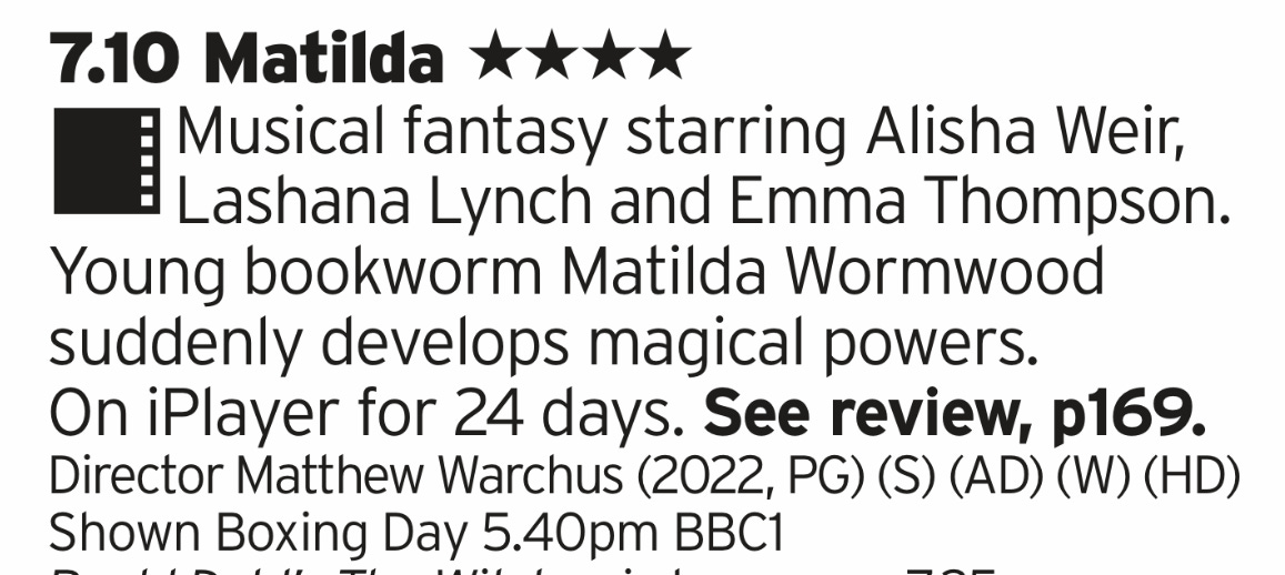 It’s the modern take on Matilda based on the Dahl book, this time with songs! The songs are mostly bangers, the film doesn’t shy away from that nasty edge like the original and Emma Thompson nearly equals the original’s iconic take on Ms Trunchball. The only thing it loses really is the presence of Danny DeVito. Asking my youngest which was better left him stumped for a minute then he confirmed “the newest is best as Ms Trunchbull gets cooked” so there you go