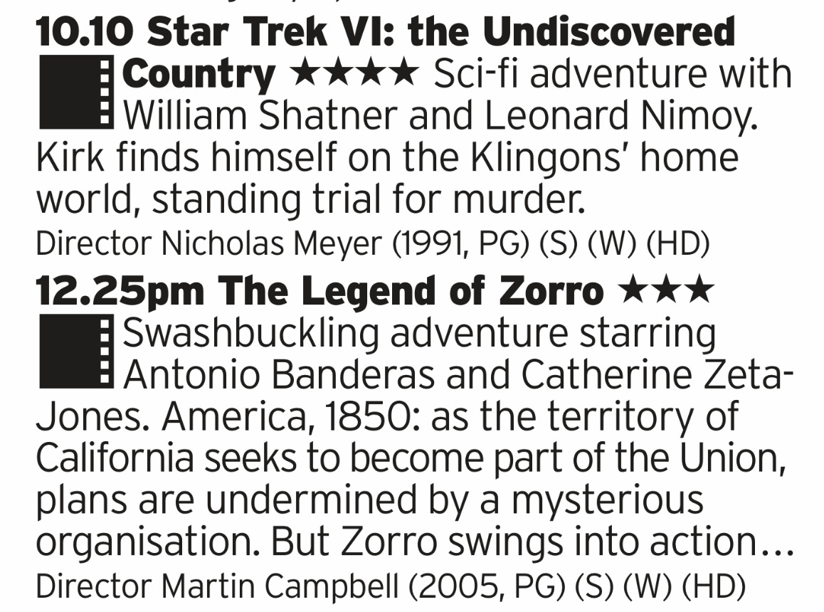 Thankfully, and a bit ironically, 5 skipped the fifth film in the Trek series which is, let’s be honest, a bit of a misstep. This one is much better and a return to form, and a great send off for the original cast. Then we have a Zorro film which isn’t the first underrated 90s classic but the decent sequel. It is good, just felt a bit too much time had passed since the first film