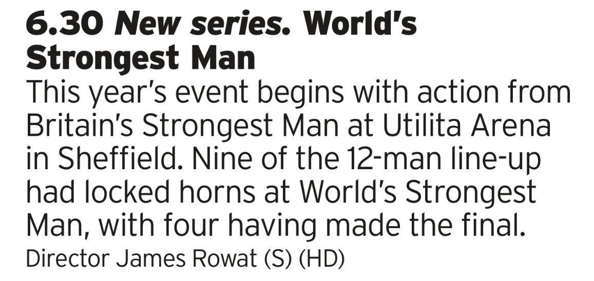 When you’re talking about TV over the Christmas period you have to include the World’s Strongest Man. You just have to, it’s almost a law that this a) needs to be scheduled on one of the TV channels and b) you need to get it watched. Big burly lads lifting heavy things, or pulling heavy things or (if we’re lucky) throwing heavy things? Get it on the season record all the way up to the New Year