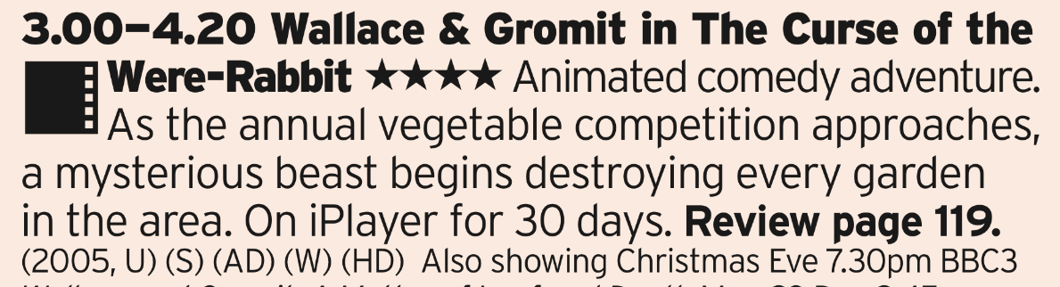 Yeah, it’s not the best but even mid-tier Aardman is still really good. This was just before they went down the CGI route which gave us okay films, but nothing in the Aardman canon hits like their claymation stuff. This isn’t quite the best of Wallace and Gromit but has some great moments especially with the ancillary characters that don’t normally get that much time to shine