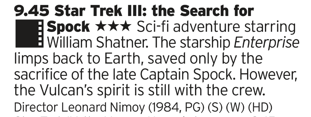 And another Trek! The second part of the Trek movie trilogy this is a bit of a step down from Wrath of Khan but is still one of the best of the films with the original cast. It is pretty cool how that this series, that was pretty much in mothballs let’s be honest, came back so strong as films and really established itself into pop culture.