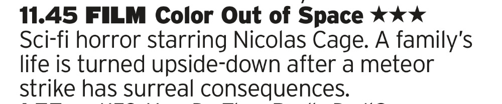 Here’s your mad Nic Cage film of the day! Not quite as mad as his turn in Mandy but still one for the list. Its a good bit of Lovecraft that will be sure to help you off to sleep