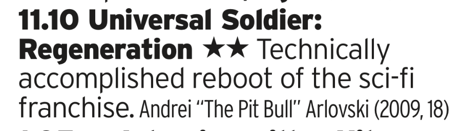 ‘Technically accomplished’ is a bit of a back handed compliment there. Fairly sure this film got in ahead of the Legacy Sequel trend a good 3 or 4 years ahead of everyone else? Its pretty good, loses a bit of a daftness of the original Universal Soldier which is replaced by a load more grit which isn’t great. Essentially if the original UniSol was Fortnite then this one is Call of Duty Warzone so take that as you will