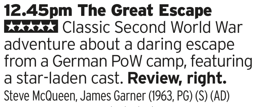 Speaking of bangers, lets cross over now to World War II as a bunch of lads try to escape some Nazis. Do they succeed? What do you think? Yes its a bit depressing but its also a holiday TV tradition so best to settle in and get ready to whistle that theme tune for a good week or so