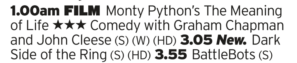A good film to end the night on, despite this Monty Python film being somewhat of a regression as it loses the story structure of Life of Brian and is more of a loose anthology of sketches. Still good thought! Also, wanted to highlight Dark Side of The Ring as all of these used to be on the All4 app till they all dropped off a while ago. And here they are back! They’re great little documentaries about wrestlers or events like The Plane Ride from Hell. No clue which one this is but they’re all worth a watch