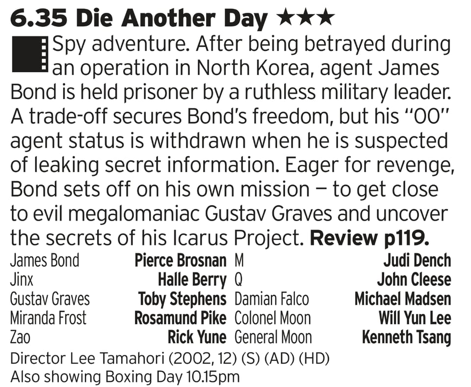 Look, I know this is far and I do mean far from the best bond film. Its not even the best of the worst Bond films. But that Bond theme? Defending that is a hill I would and have died on. A banger.