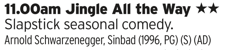 It’s far from the best Christmas film but Arnie is good value in this tale of a dad trying to find that one toy that everyone else wants. Hilarity doesn’t quite prevail but it’s not a bad time.