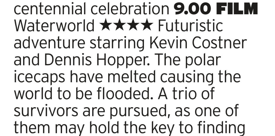 Who doesn’t want to see Costner’s monument to hubris? An overblown big budget warning about what happens when no one says no to star drunk with power. An absolute hoot.