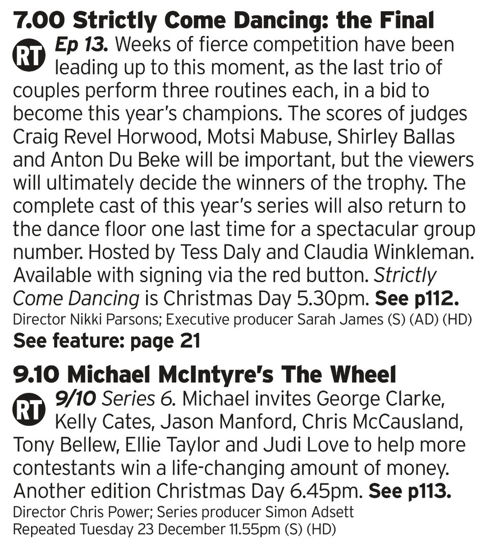 Strictly has taken some shots over the last couple of years but watching it with my youngest has been an absolute highlight. This year is the last one for Tess and Claudia so it feels like a proper end of an era which is always worth being there for. And then The Wheel because despite how annoying I find McIntyre I do like a quiz