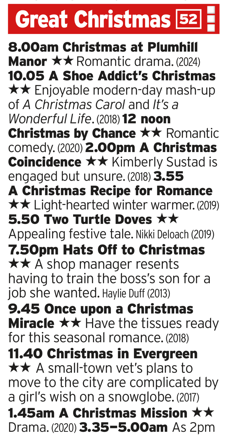 Yes, none of these films are going to be, they’ll be those Hallmark Channel quality fare but if you need something on in the background whilst wrapping stuff or a bit of festive white noise then this should sort you out.