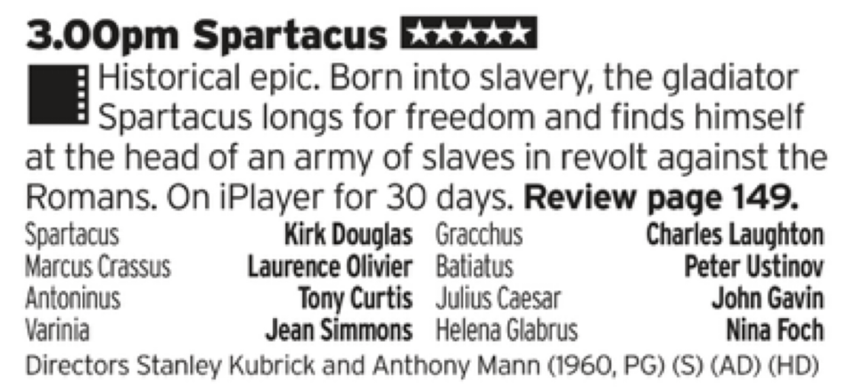 Here’s another film that’s ubiquitous for those days when you’re off work and full of Quality Streets; a big old biblical epic full of sandals and the odd sword. Perfect for a big old afternoon doze.