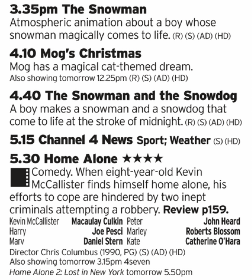 No messing about from Channel 4 here; if you want Christmas then you’re getting Christmas. You want Snowman? Well here’s a Snowdog as well and an extra cat animation for good measure. And to finish it off here’s Home flipping Alone ready to give you all of the Christmas cheer.