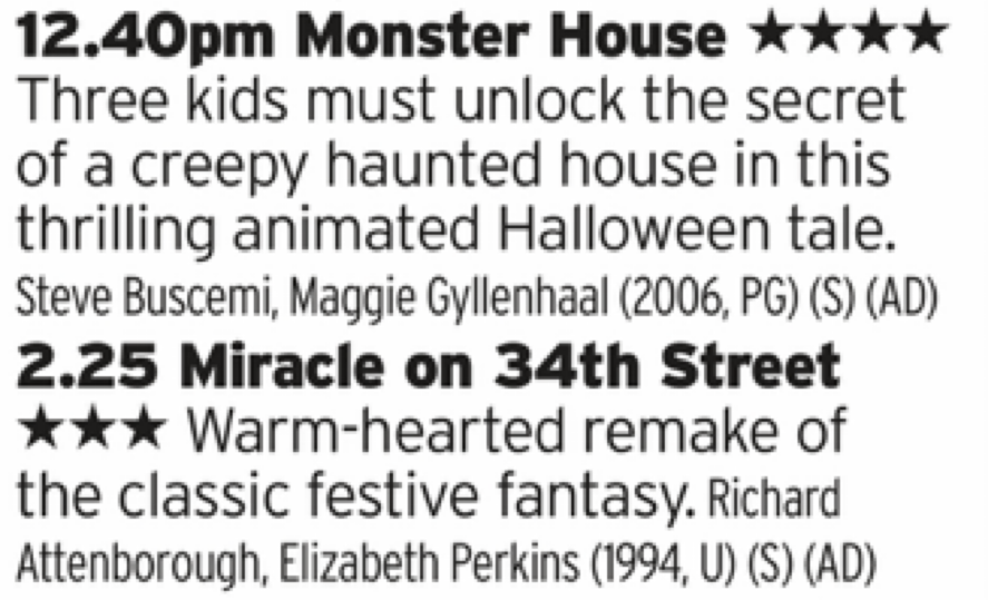 Yes, strictly speaking this double-bill starts with a Halloween film but thats just to balance out the festive force of the second film; whilst it isn’t one of the top tier Christmas titles old Dickie Attenborough is easily one of the definitive screen Santas which goes a long way