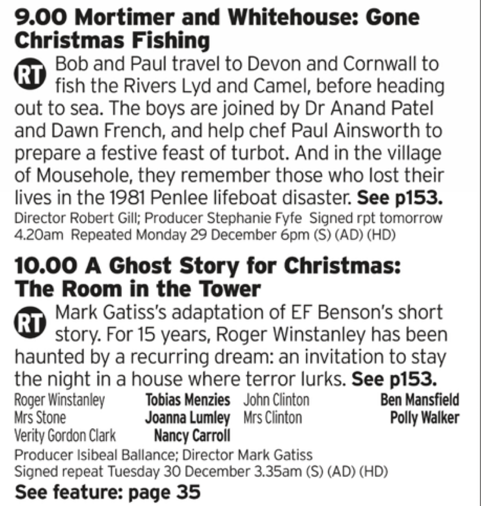 Some true comfort TV with Bob and Paul gong about fishing and having witty back and forth conversations about pretty much anything. And then more ghosts!