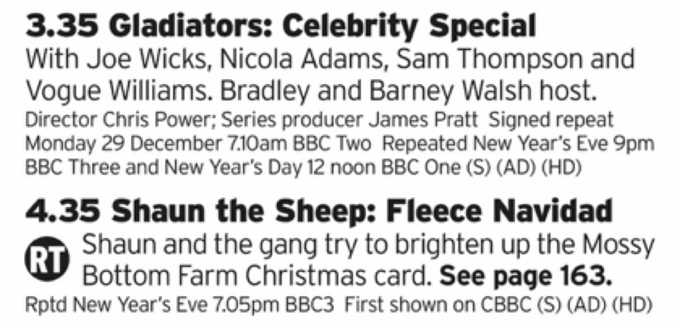 Oh boy we get some new Gladiators which is honestly one of the best TV shows of the past few years. Fingers crossed we get a big load of Legend action as that would easily be the greatest Christmas gift any of us could have. And them more Shaun the Sheep, which should be fun but lets be honest we’d all rather watch one of the other Wallace and Gromit shows.