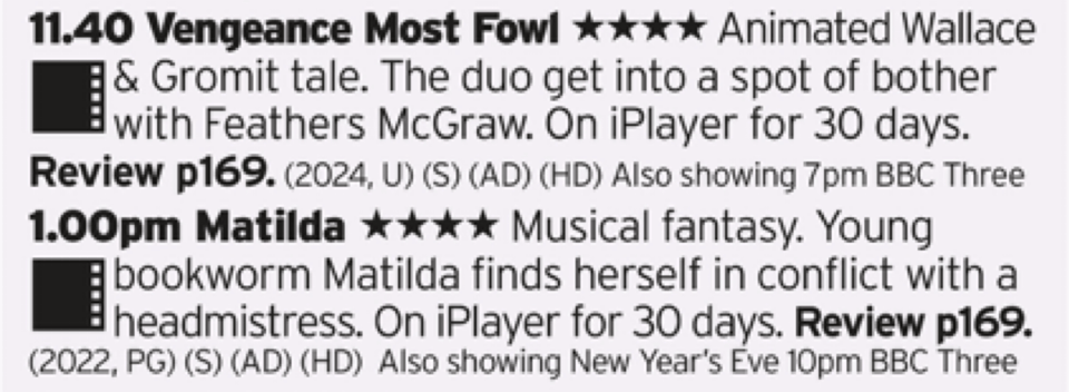 Bringing back Feathers McGraw may have seemed cynical and and an attempt to rekindle past glories, and in a way it is but also they just about pull it off. It can’t hold a candle to the earlier shows but think its better than A Matter of Loaf and Death. And then the new Matilda which is good but, I don’t know, I think loses something from the original. Danny DeVito, thats what it loses, any film that loses Danny DeVito is always on the back foot.