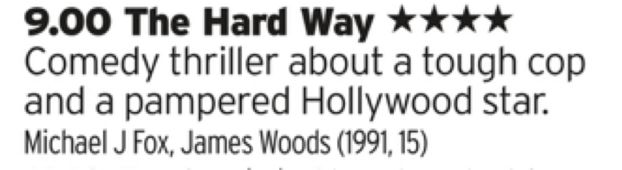 Time to separate some art from the artist; James Woods is indeed an asshole but he did do some good work back in the the day especially in this buddy cop action film with Michael J Fox. They have some great chemistry that powers the film along its fairly generic path