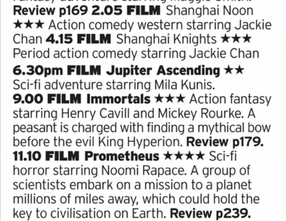 Sure we’ve had a couple here before but wanted to include them in this run of films that has a couple of other standouts; Jupiter is a great film that got a proper mauling when it was released. I think that was due to the critics wanting to lay the boot into the Wachowskis rather than due to the quality of the film itself. And then Prometheus, a film which definitely isn’t an Alien film at all. It looks great and has a couple of really good sequences but really it should have been its own thing as all the non-Alien stuff really drags it down