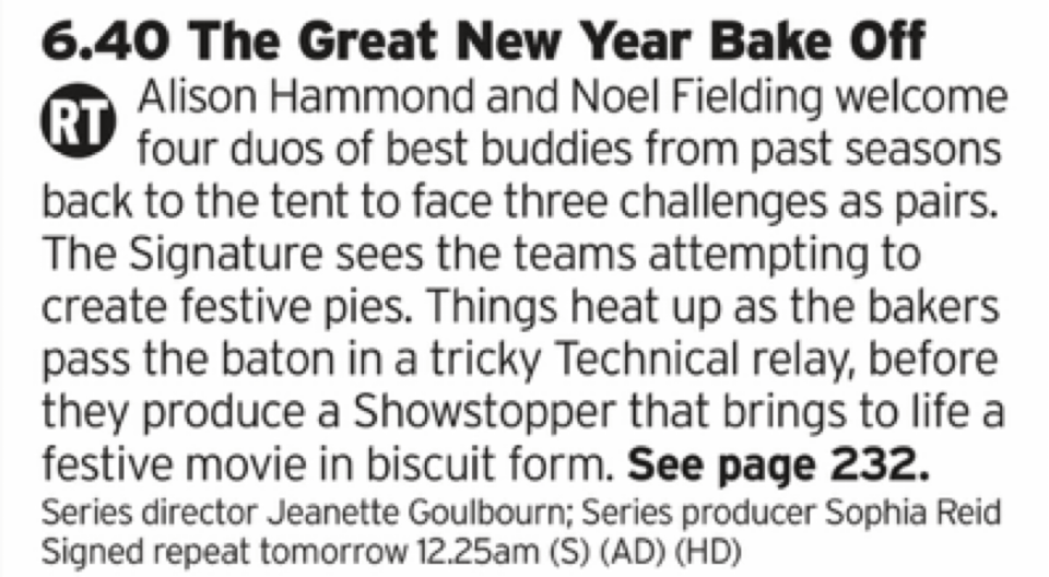 More Bake Off fun, this time with previous contestants from the show teaming up. A relay sounds mad, but if it’s as fun as the Instant Dance was in this year’s Strictly then it should be a lot of fun