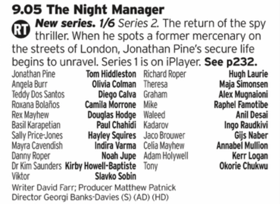 The first series of The Night Manager was cracking so a follow up is warmly received. The only issue here is that Hugh Laurie was a big part of the success of that first series so without him will it be as good? He’s in the credits there but it’s not clear if that’s just flashbacks or a small cameo. Guess we’ll have to watch it and find out!