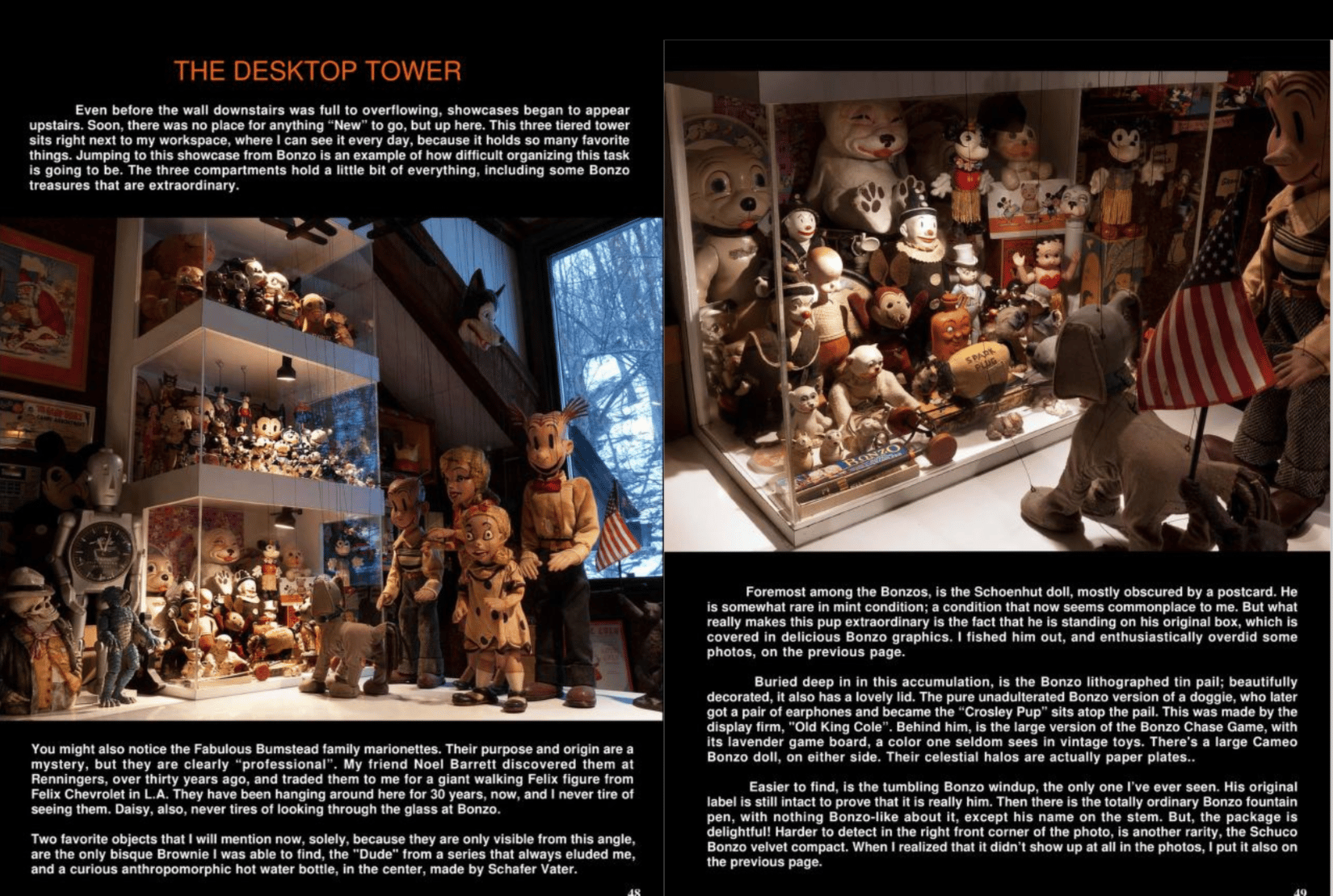 El primer coleccionista que se me viene a la cabeza es Mel Birnkrant, un tipo que lleva toda su vida coleccionando juguetes vintage y que tiene la colección más loca de Mickey Mouses del mundo. En su web, que es ya de por sí una pieza de arte, te puedes hacer a la idea de cómo tiene su casa (increíble) y puedes descargarte los libros que ha escrito (mi sueño es imprimirlos, encuadernarlos y desaparecer para siempre). También puedes ver el corto que Kenneth Anger le dedicó a su colección de Mickey Mouses y que lleva por título el nombre de la web de Mel, Mouse Heaven.