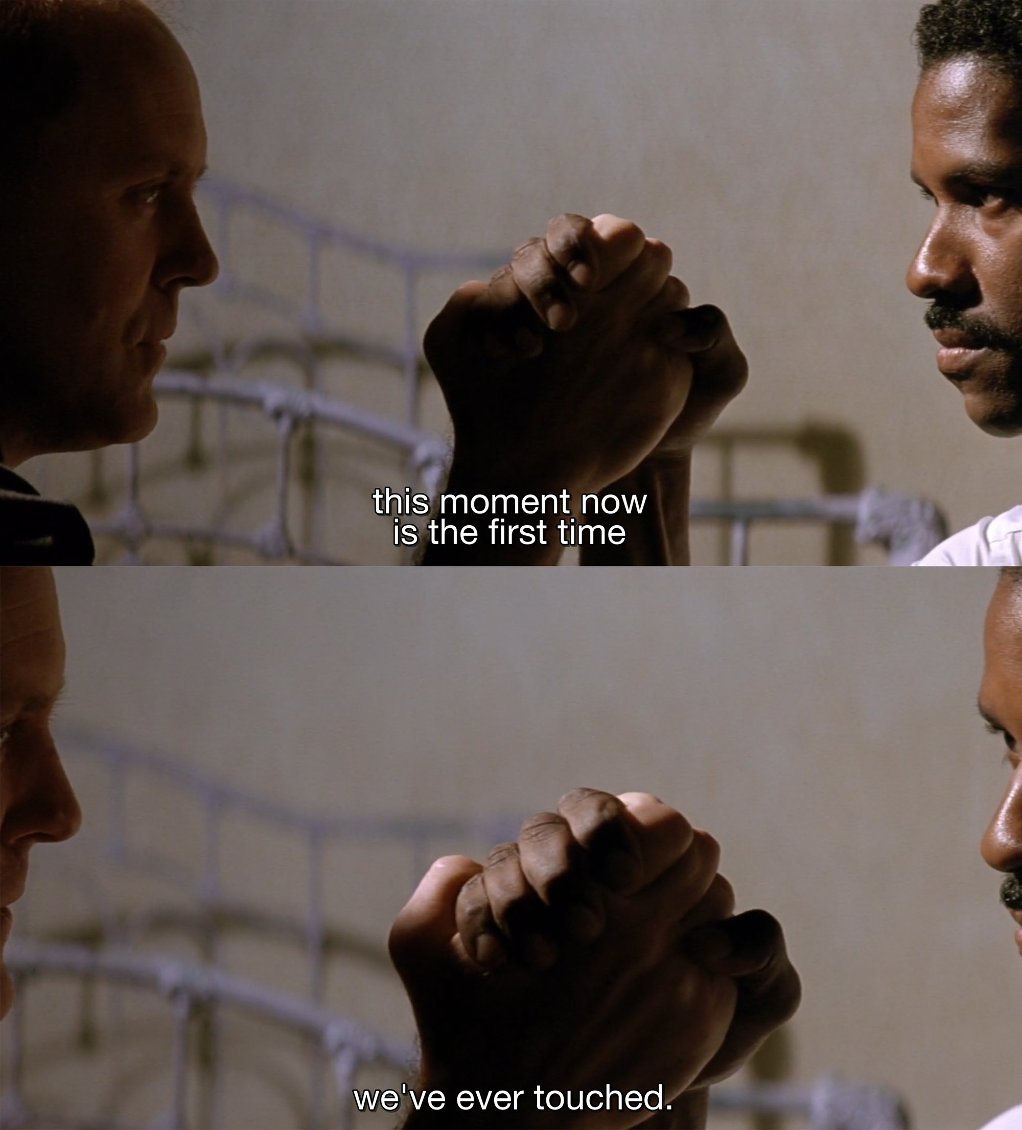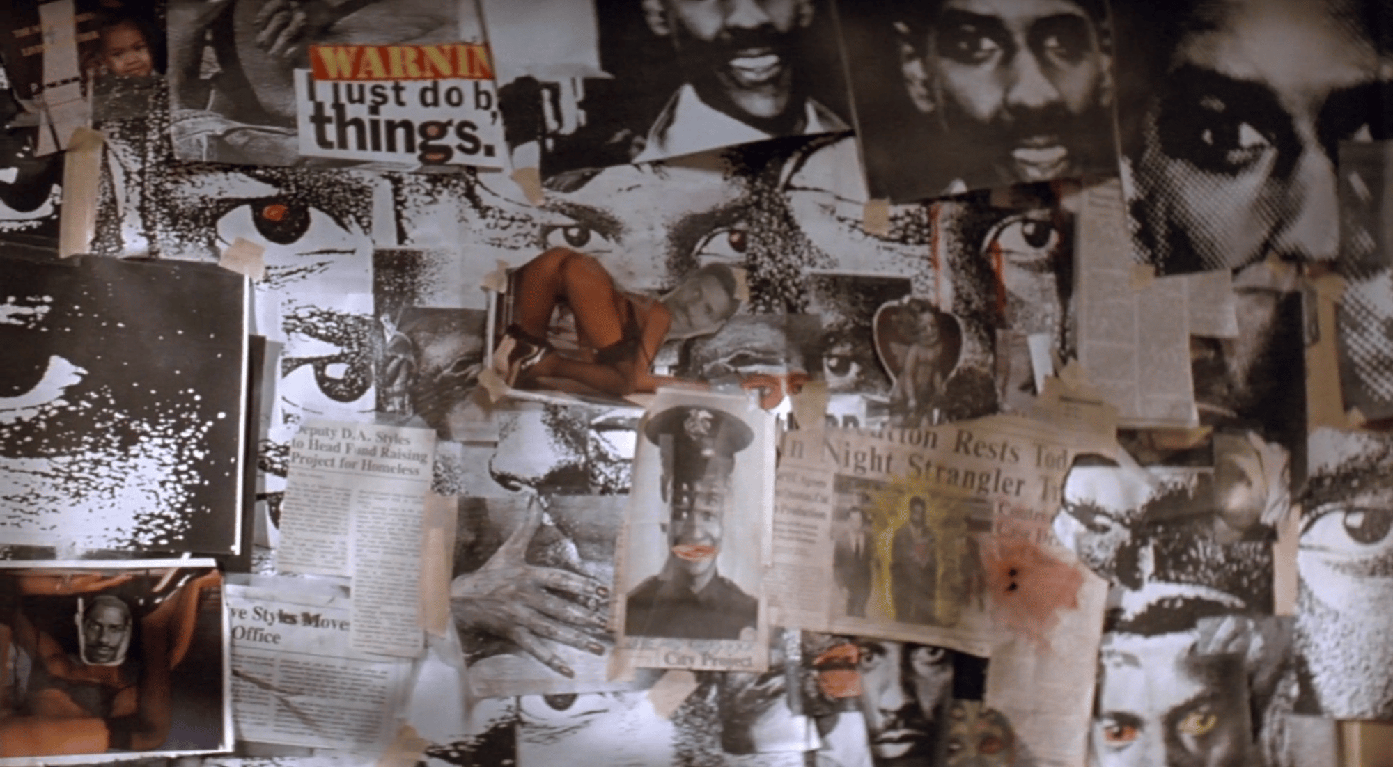 Es algo a lo que le suelo dar vueltas, y más desde que vi Ricochet (1991) de Russell Mulcahy, una peli donde John Lithgow vuelve a interpretar a un asesino (Earl Talbot) obsesionado con Nick Styles (Denzel Washington), el policía que le metió en la cárcel al inicio de su carrera criminal. Encerrado, Talbot jura vengarse y pasa el rato pensando en Styles, empapelando su celda con fotografías de él y recortes de prensa en los que se hablan de sus triunfos. Styles se ha casado, ha tenido dos hijas y no paran de ascenderle. Talbot por su parte se ha hecho un pendiente y no para de fotocopiar fotos de Styles. Mientras la vida ahí fuera sigue (impulsada por el amor), en la cárcel el tiempo se ha detenido (¡así es el odio!). Al final, Talbot consigue escaparse de la cárcel, secuestra a Styles y por fin lo tiene a dos palmos de su cara. De hecho, esa es la escena clave de la historia –por si no te habías dado cuenta ya es la peli más gay del mundo–, cuando Talbot le dice a Styles: «es la primera vez que nos tocamos». Luego continúan siendo enemigos mortales y Styles mata a Talbot con la ayuda de Ice-T.
