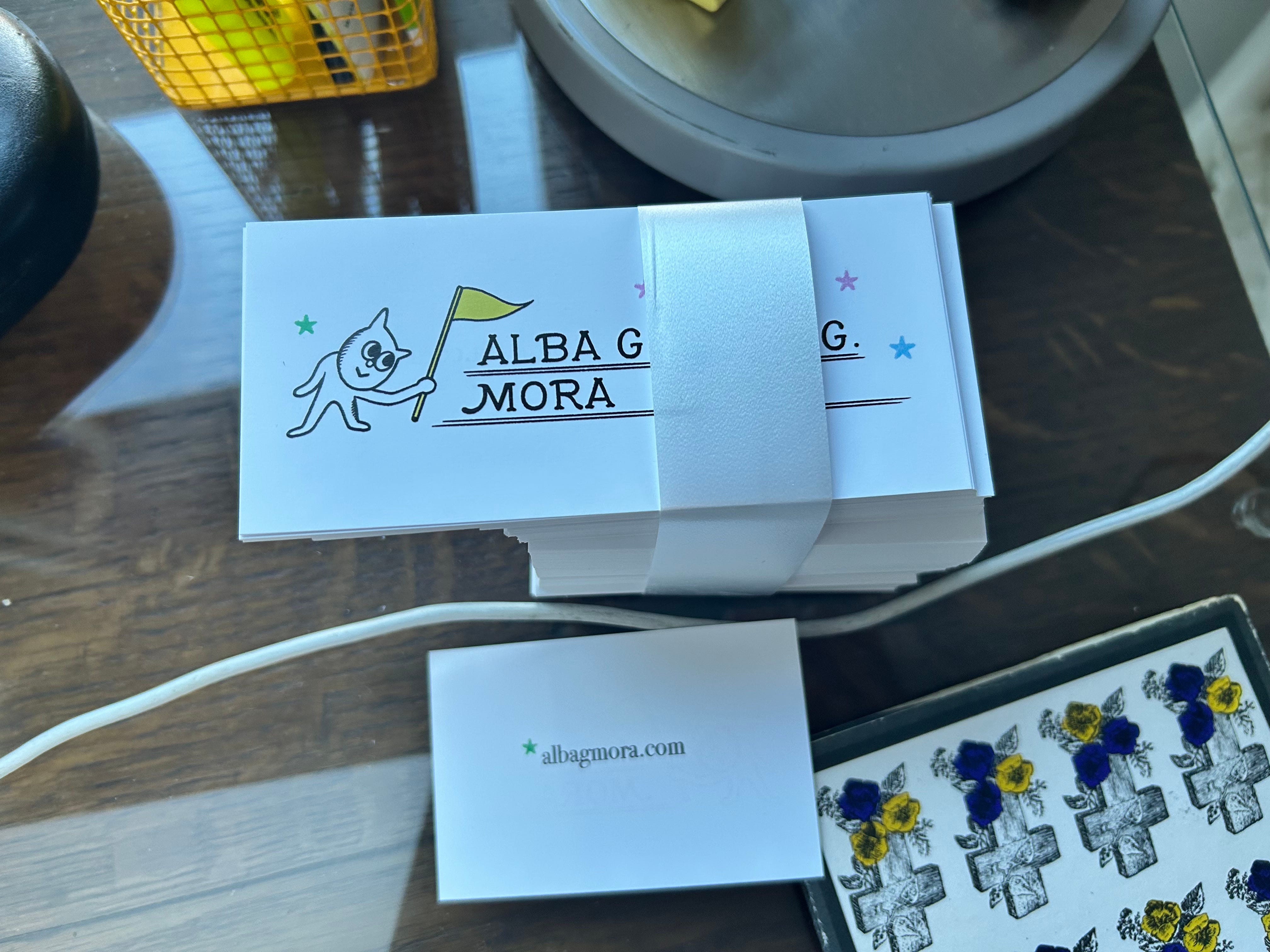 Que esté pasando todo esto (en mi cabeza) me viene muy bien porque en las últimas semanas he estado trabajando en un nuevo fanzine.1 Se va a llamar «Peeping Meadia» [sic], y en él he recopilado frames de los vídeos que grabé en Japón desde las diferentes habitaciones de hotel en las que estuve (el zoom de mi cámara es una cosa increíble).2 Tendrá 20 páginas, lo imprimiré en offset (espero venderlo todo porque si no estoy jodida para siempre), incluirá una nota adjunta con un clip, vendrá en un sobre blanco con un sello que he comprado en tusellopersonalizado.es y… una tarjeta de visita en la que pone Alba G. Mora y albagmora.com. Del fanzine imprimiré 150 copias, pero de tarjetas he impreso 250 que ahora mismo están encima de mi escritorio hasta que llegue el fanzine. Las veo y pienso que, siendo yo como soy, prefiero vivir con el hecho de que alguien me mire a que nadie lo haga. Así que si el zoom de la cámara del conserje es como el de la mía, podrá ver las tarjetas y espiarme online, porque tampoco queda tanto para que las hojas vuelvan a crecer y me pierda de vista.