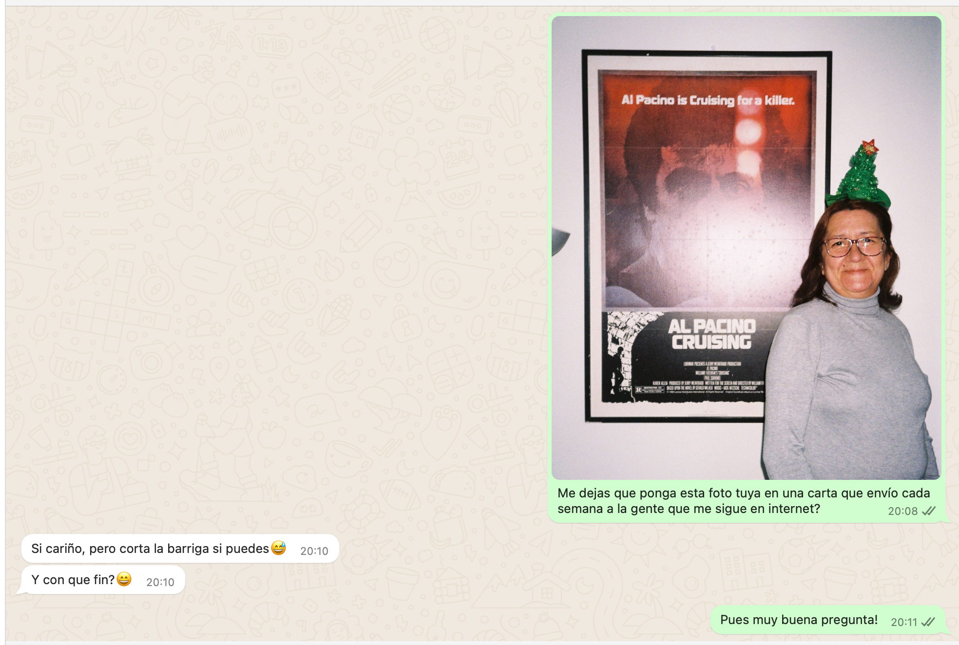 También fue la época de mi obsesión por Gummo de Harmony Korine, así que me dediqué a plagiarla salvajemente durante un año. Nadie se dio cuenta porque uno de los profesores a los que más admiraba me dijo, después de ver mi trabajo final, que llegaría lejos y que tenía una sensibilidad muy especial. Me fui de clase deseando que nunca viese Gummo y validada por un hombre, que era algo a lo que estaba enganchada. En ese momento hacía prácticas en un sitio de mi barrio llamado Interfilm. Introduje la restauración de fotos antiguas –gracias a las clases de Photoshop en las que nos enseñaron a usar el tapón de clonar– y los retoques. Estaba contenta y me sentía realizada, creía que había alcanzado mi peak, como cuando quería ser directora de cine y mi meta era trabajar en un videoclub. Después llegó la revolución digital –en realidad antes, pero no me la podía permitir–, y el novio de mi tía me regaló una Canon EOS-450D con la condición de que hiciese rica a la familia (lo decía en serio, y me enternece pensar que en su cabeza la fotografía iba a sacarnos de pobres, pero esa alucinación colectiva hizo posible que siempre estudiara lo que quería en cada momento).