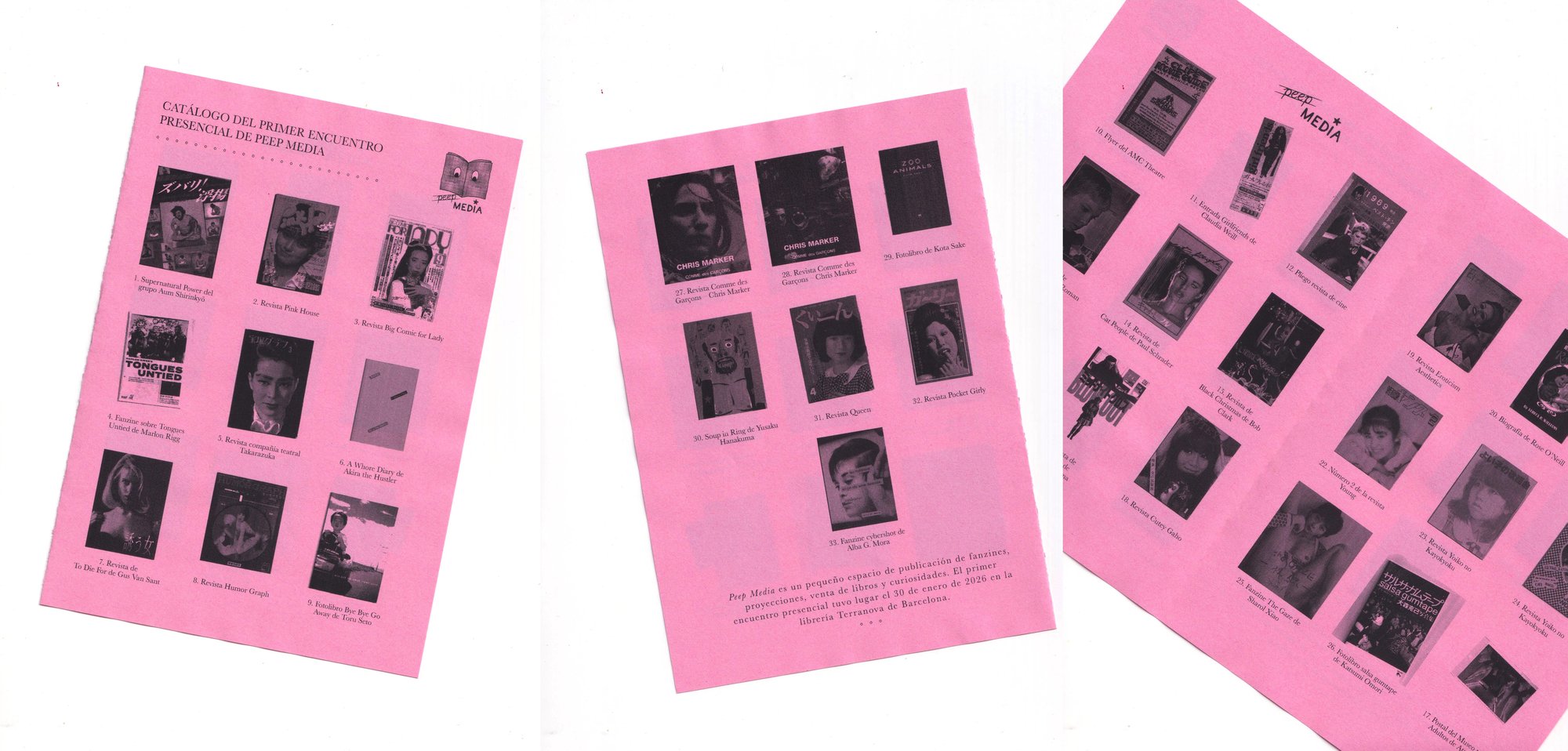 Quiero pensar que aunque nos movamos en un mundo lleno de incertidumbre, todo termina encajando. Con el paso del tiempo me he dado cuenta de que cuando puse a la venta el fanzine me estaba dando permiso para compartir lo que miraba, lo que hacía, mis obsesiones. Llevaba tiempo haciéndolo online, pero el papel le da un peso diferente al asunto. Después llegó el fanzine de Keep On Walkin’ y el de Palacio Rosa de Dave Hankins, que me abrió la puerta a publicar el trabajo de otros en este formato tan versátil, divertido y accesible. En Navidad me compré una impresora y en mi último viaje a Tokio en diciembre, varios libros, revistas, papelajos y fanzines. Tenía claro que quería empezar el 2026 como había empezado el 2025, haciendo lo que más me gusta. Y fue cuando me vino a la cabeza el nombre Peep Media de nuevo. Y lo tuve claro, y volví a pedirle a Andrés que me hiciera el logo del que será un sello de fanzines dedicado a publicar a gente a la que admiro. También será un espacio de venta de libros y curiosidades y un lugar desde el que poder organizar diferentes actividades (¡proyecciones sobre todo!). Todo esto se hará principalmente online, pero una o dos veces al mes os convocaré en la librería Terranova de Barcelona (C/Comte Borrell 99), donde Luis y Lucía me han cedido un espacio precioso, y muy idóneo, en la trastienda.